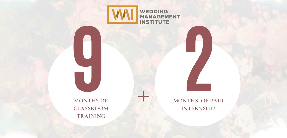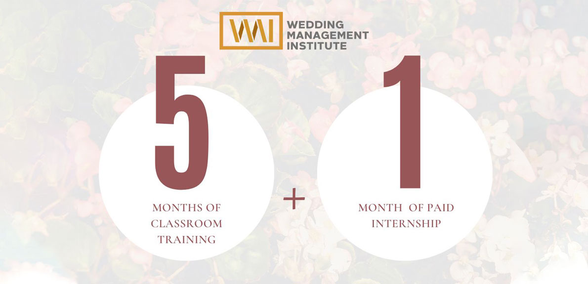 Through 5 months of weekend classroom training and 1 month of a paid internship, students will learn about the various duties and responsibilities of a certified wedding manager. The course will cover the following topics: